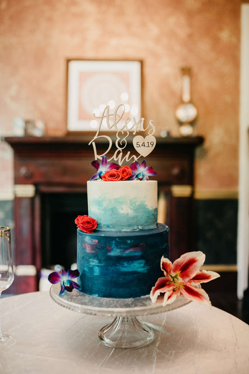 on a rainy day was a perfect blend of their personal style and family traditions. Their bold colors translated beautifully to the watercolor wedding cake and everyone gave toasts. Congratulations, y’all!