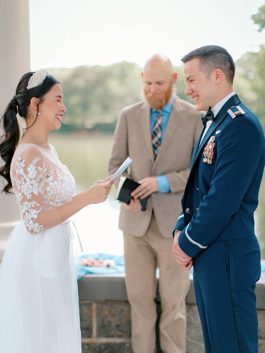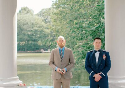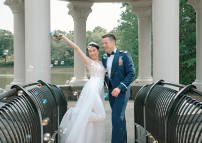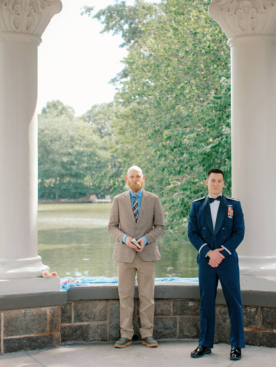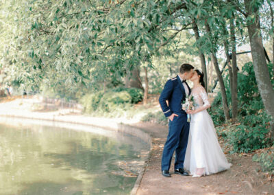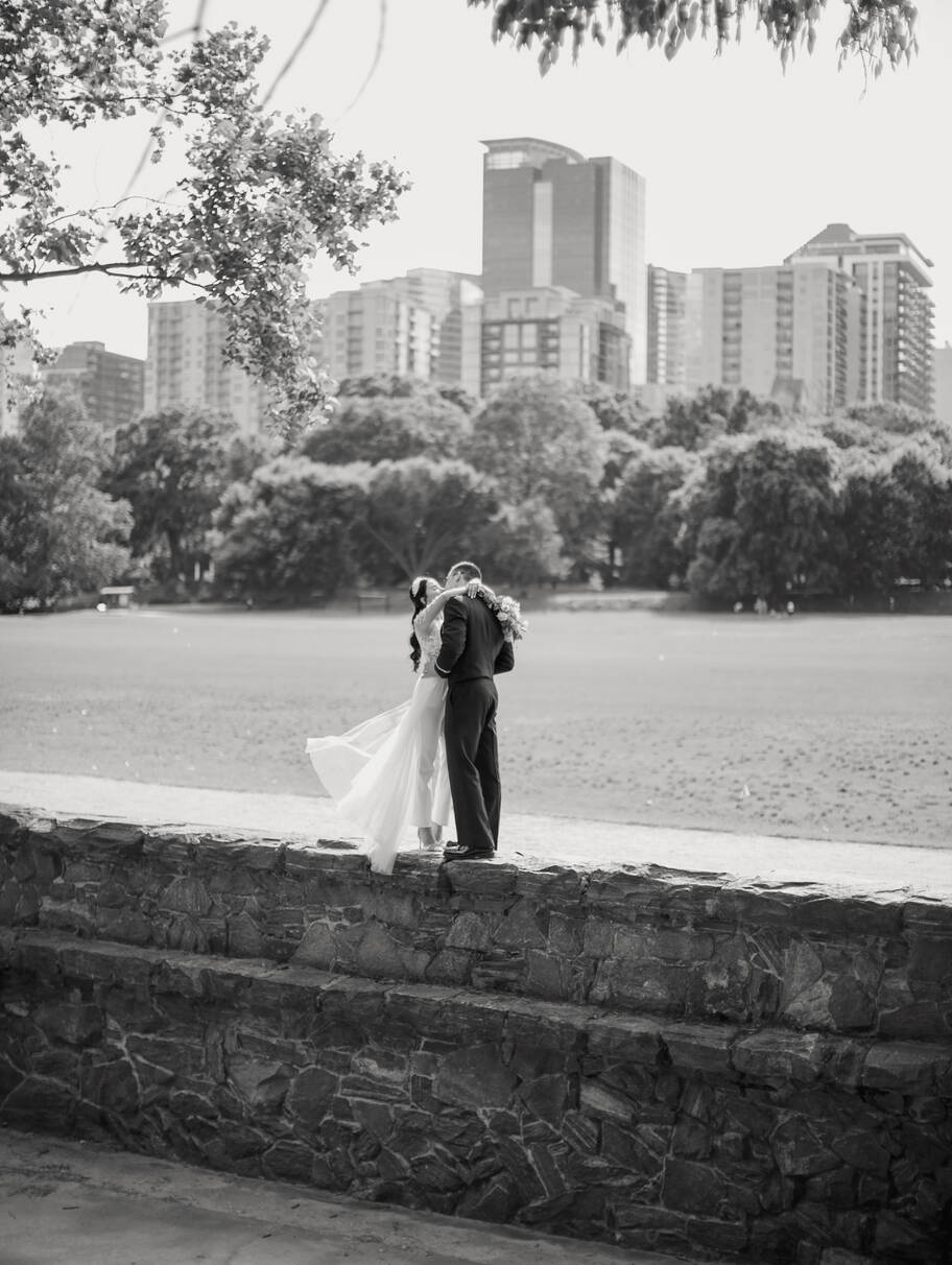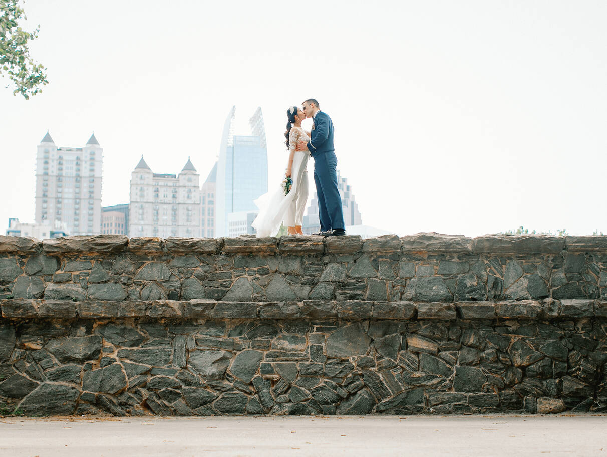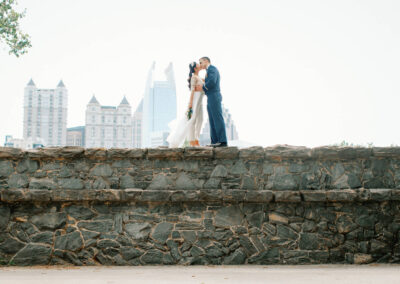 Jet-setting couple Alyssa and Matthew’s love story has more passport stamps than Anthony Bordain. Their work takes them from Dubai to Germany to Bali, yet they chose a sweet elopement in Piedmont Park. They brought the heart and Sweet Grass Weddings brought the frills for their beautiful parkside ceremony.