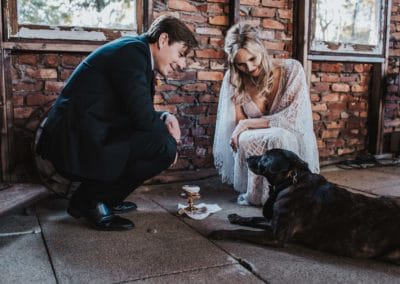 Best friends Emily and JP married at the Old Smyrna Firehouse with their parents and very close friends in attendance and of course their Best Dog, Dax. After their ceremony and reception, the whole party went back to an AirB&B for supper.