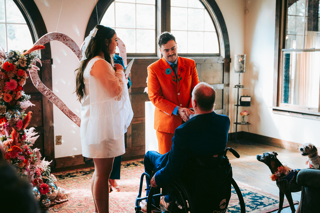 As many disco balls as possible were the order of the day to create the fun retro theme for Hannah and Jay’s wedding at the Old Smryna Firehouse! With their sweet dogs included in the ceremony, everyone near and dear was present to witness their marriage.