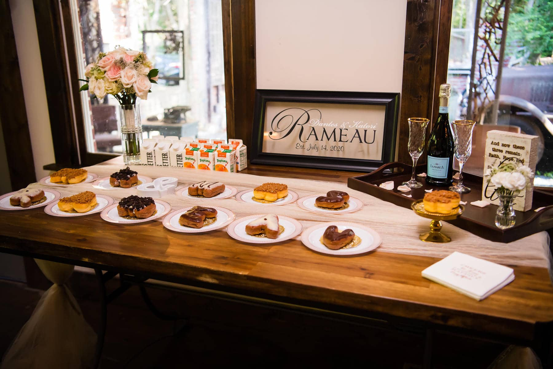 eloped on July, 14 in an intimate ceremony surrounded by friends and family. Their wedding was simple and sweet (not just the doughnuts!) with the big style their love brought. We wish you all the best you two!
