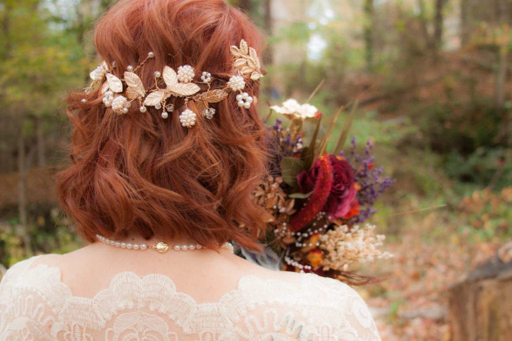 Lauren’s headpiece complemented her gorgeous bouquet of dried flowers. Photography by Lindsey Key Fair LNKPhotography