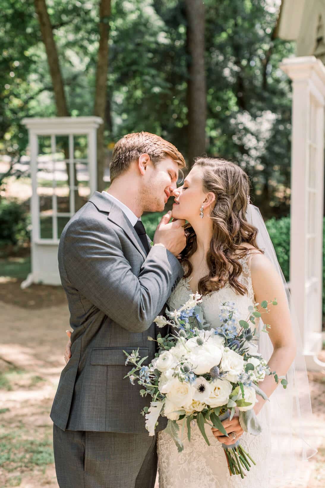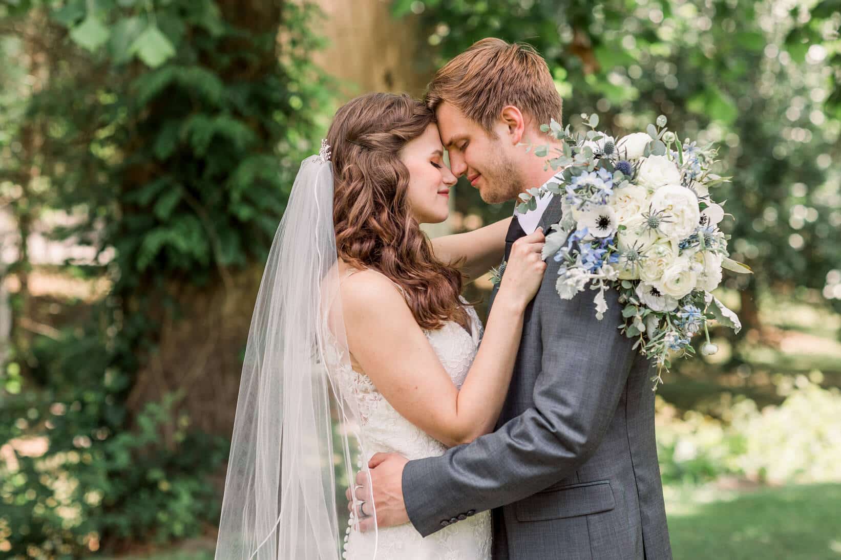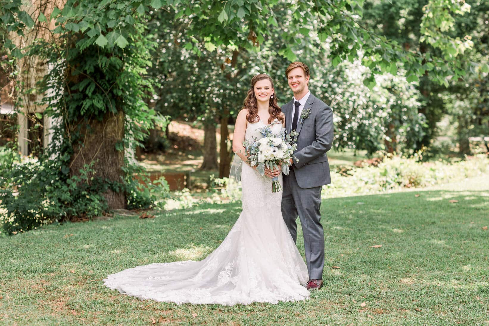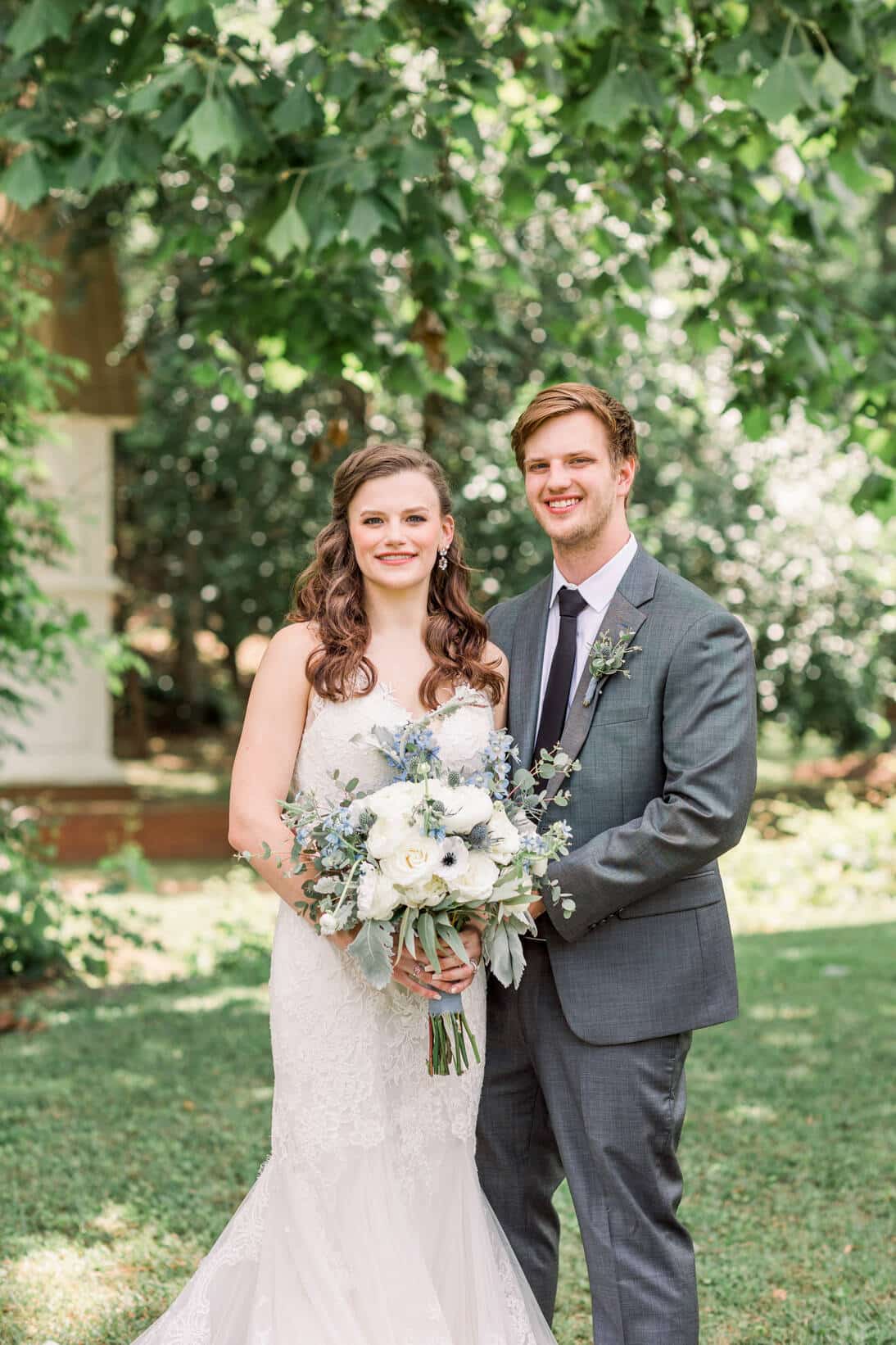 Lindsey and Reeves are another couple who reconnected after high school! Their blue, white and green color palette was perfect for their late spring wedding at Forest Hill Park in Perry Georgia where about 20 family and friends joined them to celebrate!