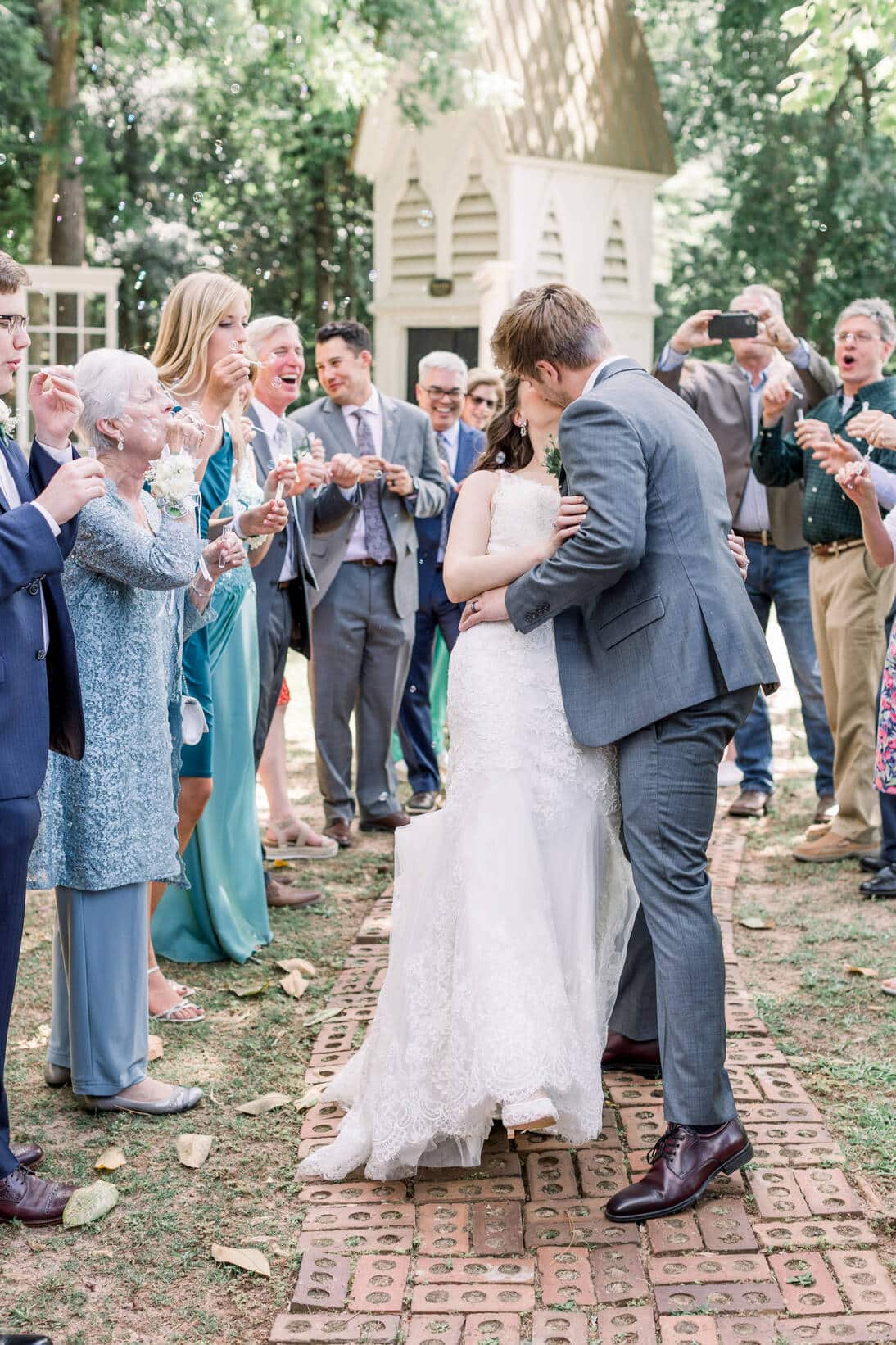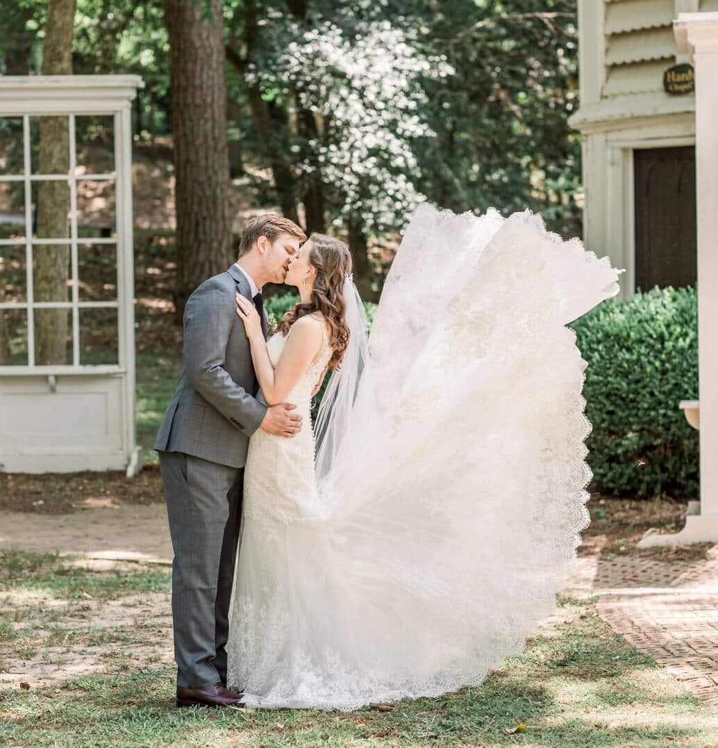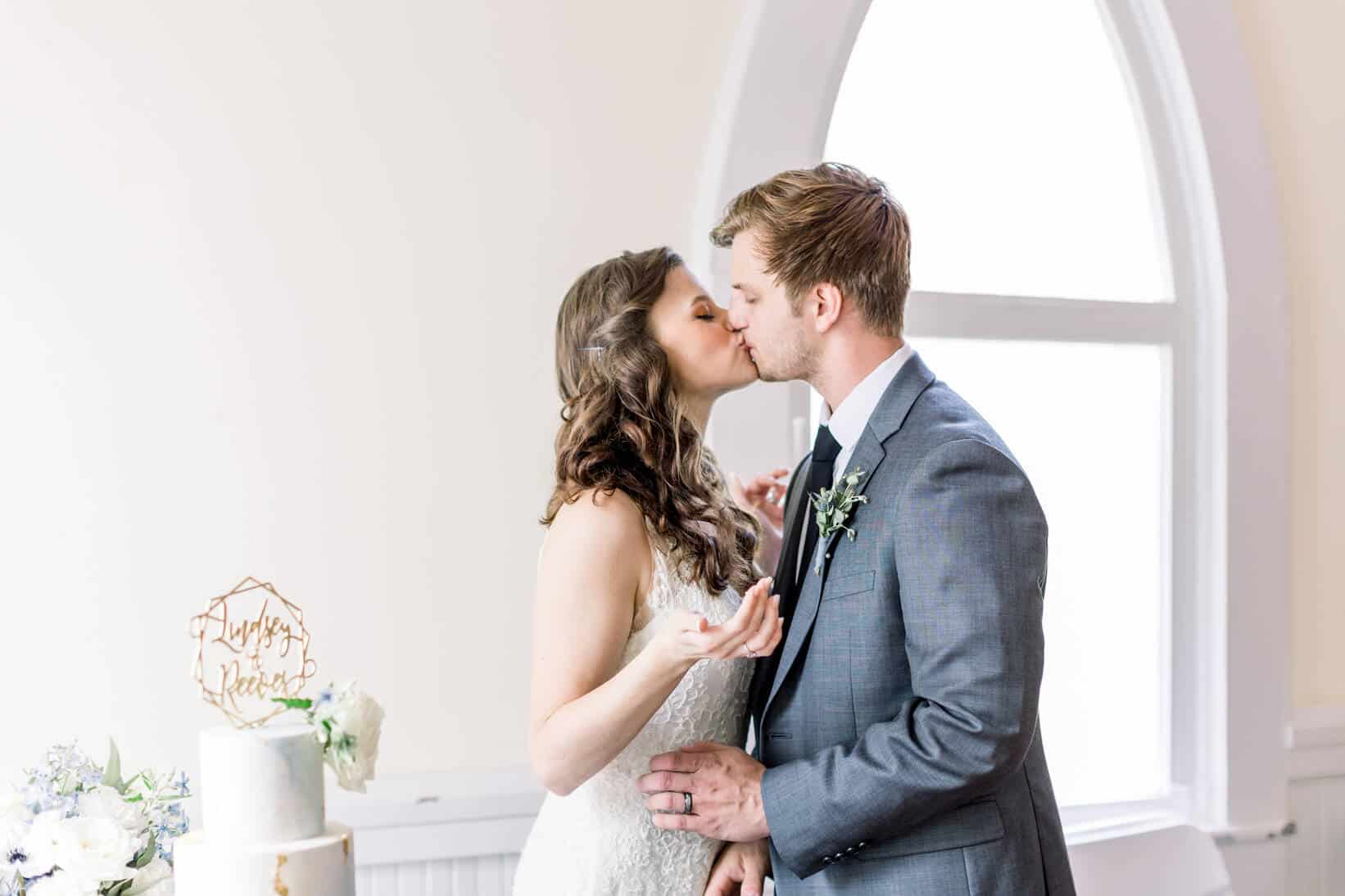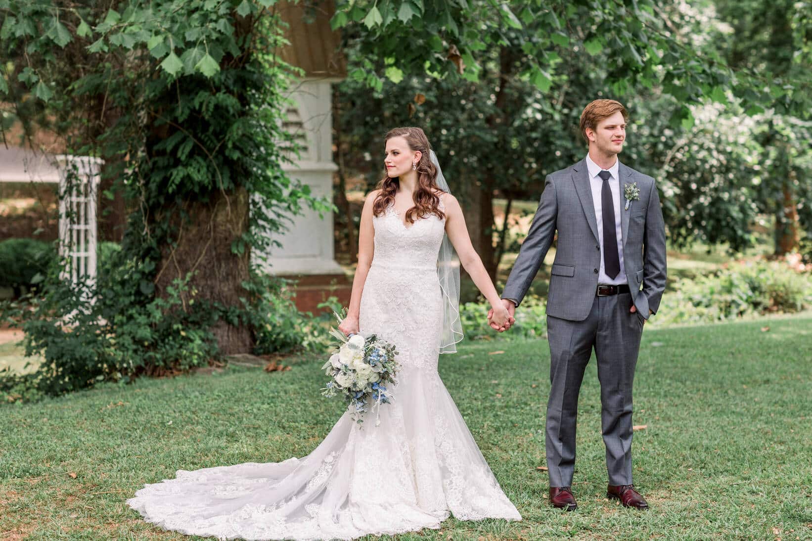 Lindsey and Reeves are another couple who reconnected after high school! Their blue, white and green color palette was perfect for their late spring wedding at Forest Hill Park in Perry Georgia where about 20 family and friends joined them to celebrate!