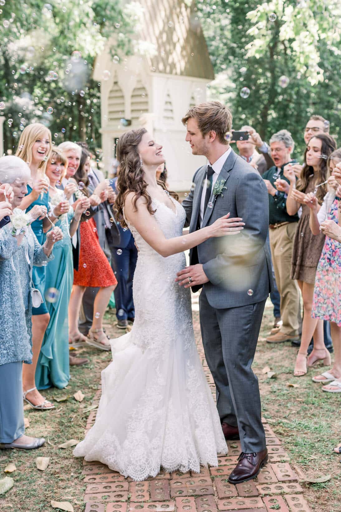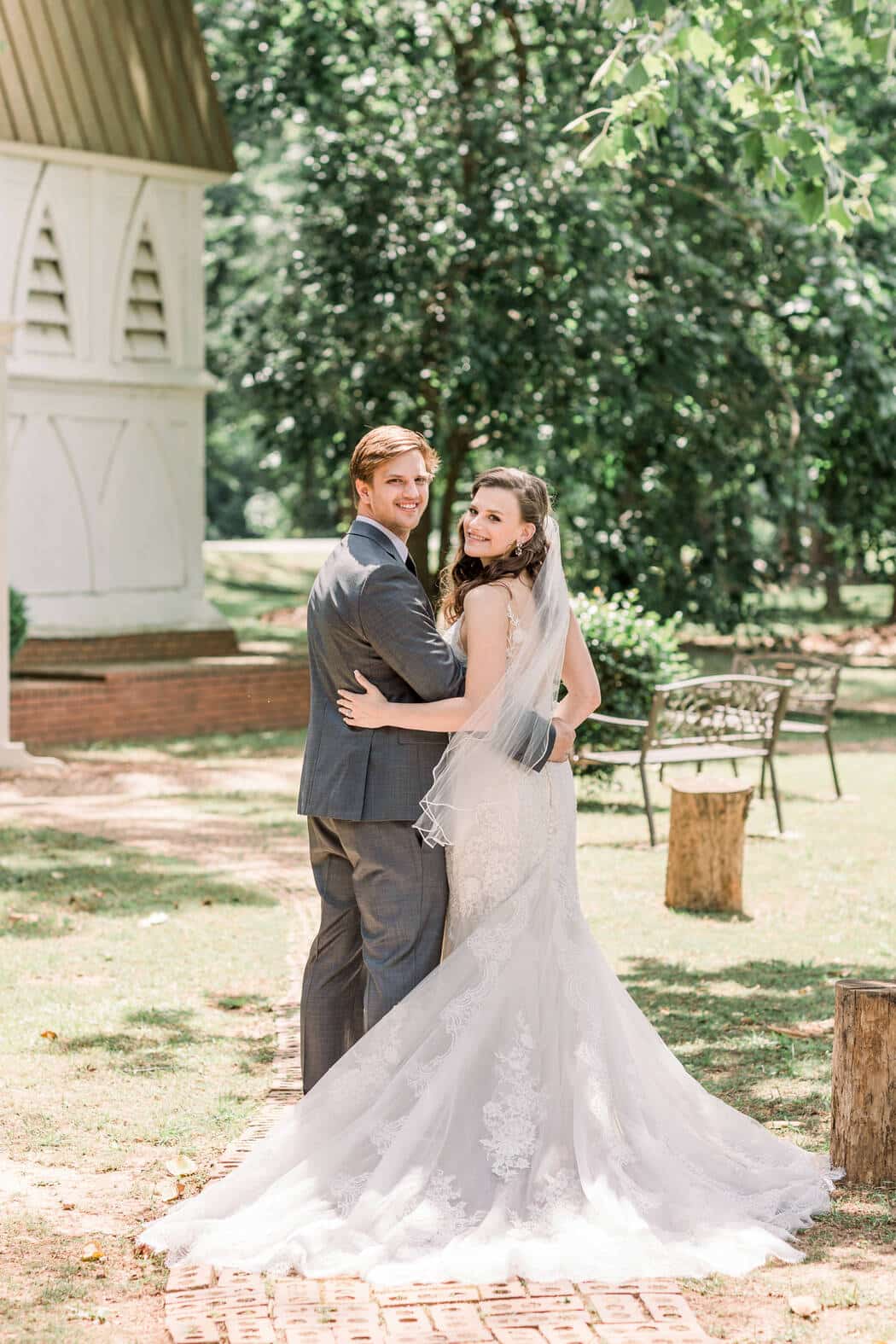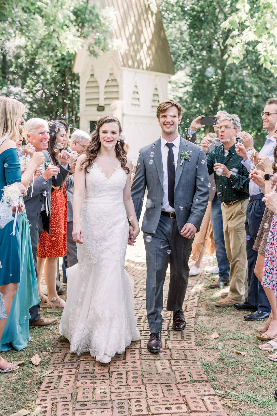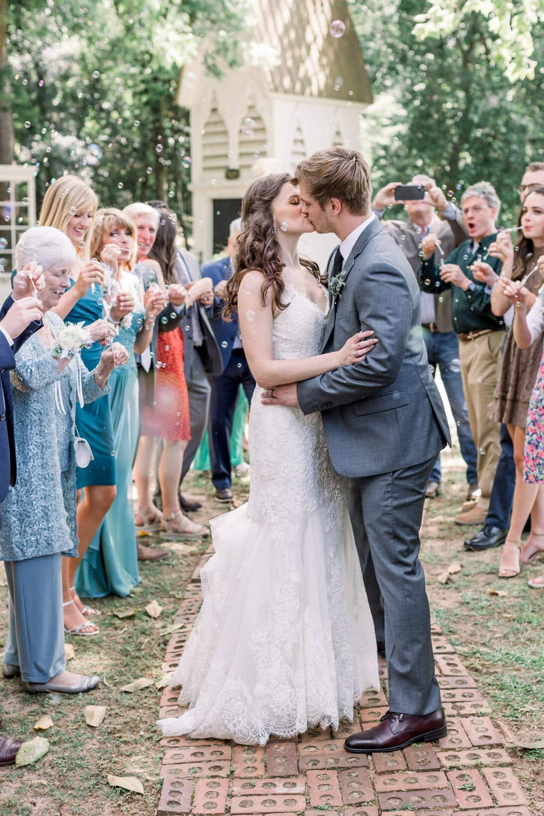 Lindsey and Reeves are another couple who reconnected after high school! Their blue, white and green color palette was perfect for their late spring wedding at Forest Hill Park in Perry Georgia where about 20 family and friends joined them to celebrate!
